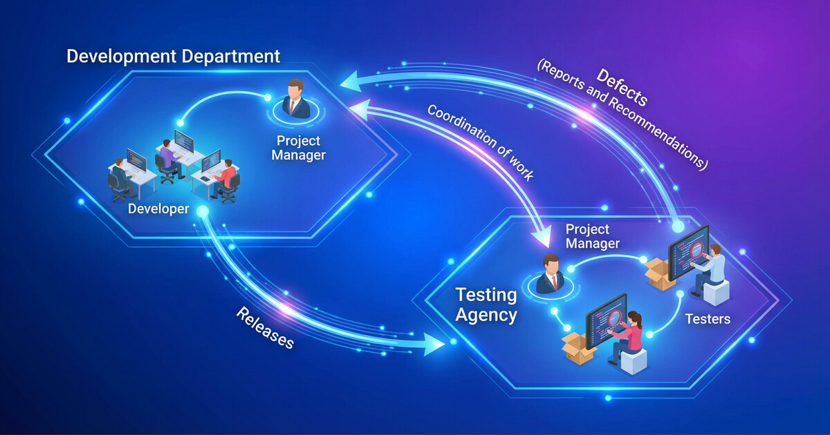 Scheme of interaction between the developer and the test agency with full outsourcing of the testing