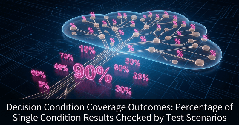 Percentage of all single condition outcomes, that affect the decision condition coverage results that have been checked by the set of test scenarios. 100% condition determination coverage presupposes 100% decision condition coverage.