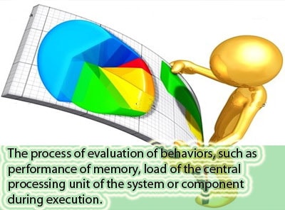 The process of evaluation of behaviors, such as performance of memory, load of the central processing unit of the system or component during execution.